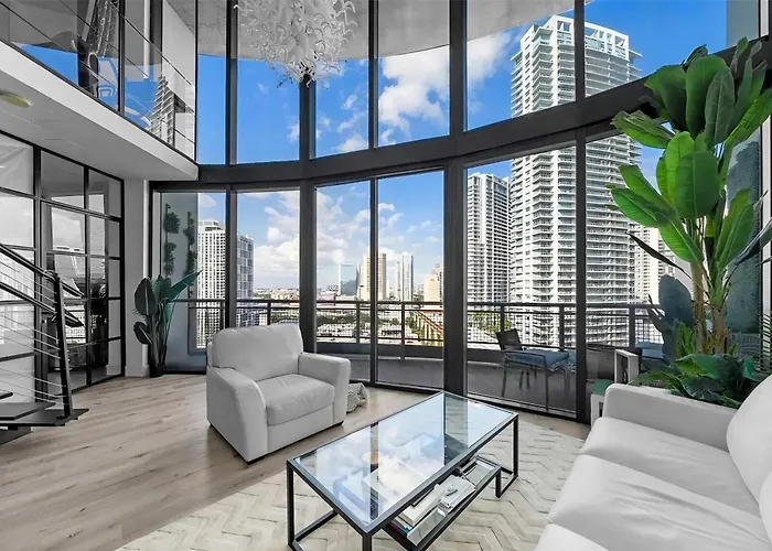 River Vista Miami, un apartamento frente a la playa, está situado a unos 5 minutos a pie del Sugar y a 5 km del aeropuerto Internacional de Miami. El apartamento ofrece acceso a unas piscinas exteriores y se encuentra justo al lado del Centro Comercial Brickell City Centre.